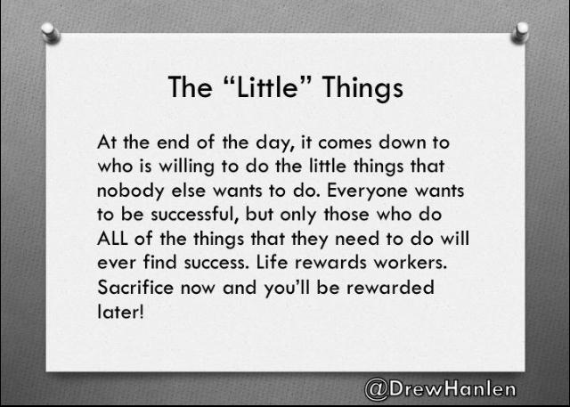 This year the theme is little things add up. The little tiny things that dont seem like they are that important will add up to big things over time. He said Its OK for the executive to be a little late but everyone else needs to be on time ready to start when the executive shows up I politely disagreed.