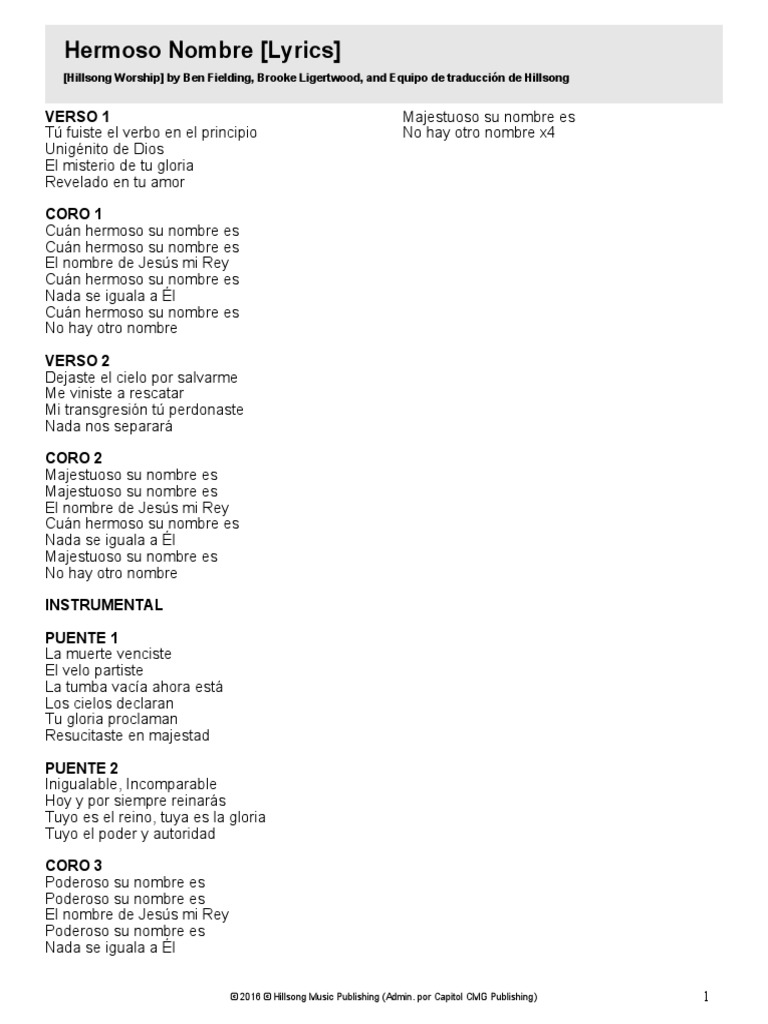 Tú fuiste el verbo en el principio Unigénito de Dios El misterio de tu gloria Revelado en tu amor Cuan hermoso su nombre es Cuan hermoso su nombre es El. Theres so much I could say about this past weekend in NYC but Ill keep that for later. Tú fuiste el verbo en el principio Unigénito de Dios El misterio de tu gloria Revelado en tu amor Cuán hermoso su Nombre es Cuán hermoso su Nombre es El nombre de. ACORDES PARA GUITARRA PIANO UKELELE. Cuán hermoso su nombre es Cuán hermoso su nombre es El nombre de Jesús mi Rey. G F El nombre de Cristo Ver solo la letra. Tú fuiste el verbo en el principio Unigénito de Dios El misterio de tu gloria Revelado en tu amor. Chorus 3 D Poderoso su nombre es A Poderoso su nombre es Bm7 A G El nombre de Jesús mi Rey DF Poderoso su nombre es A Incomparable es Él Bm7 Poderoso su nombre es A G No hay otro nombre. De la conferencia Mujer Verdadera 2017Te invito a visitar la página oficial de Jonathan y Sarah en donde podrás informarte del nuevo disco que lanzarán y l.