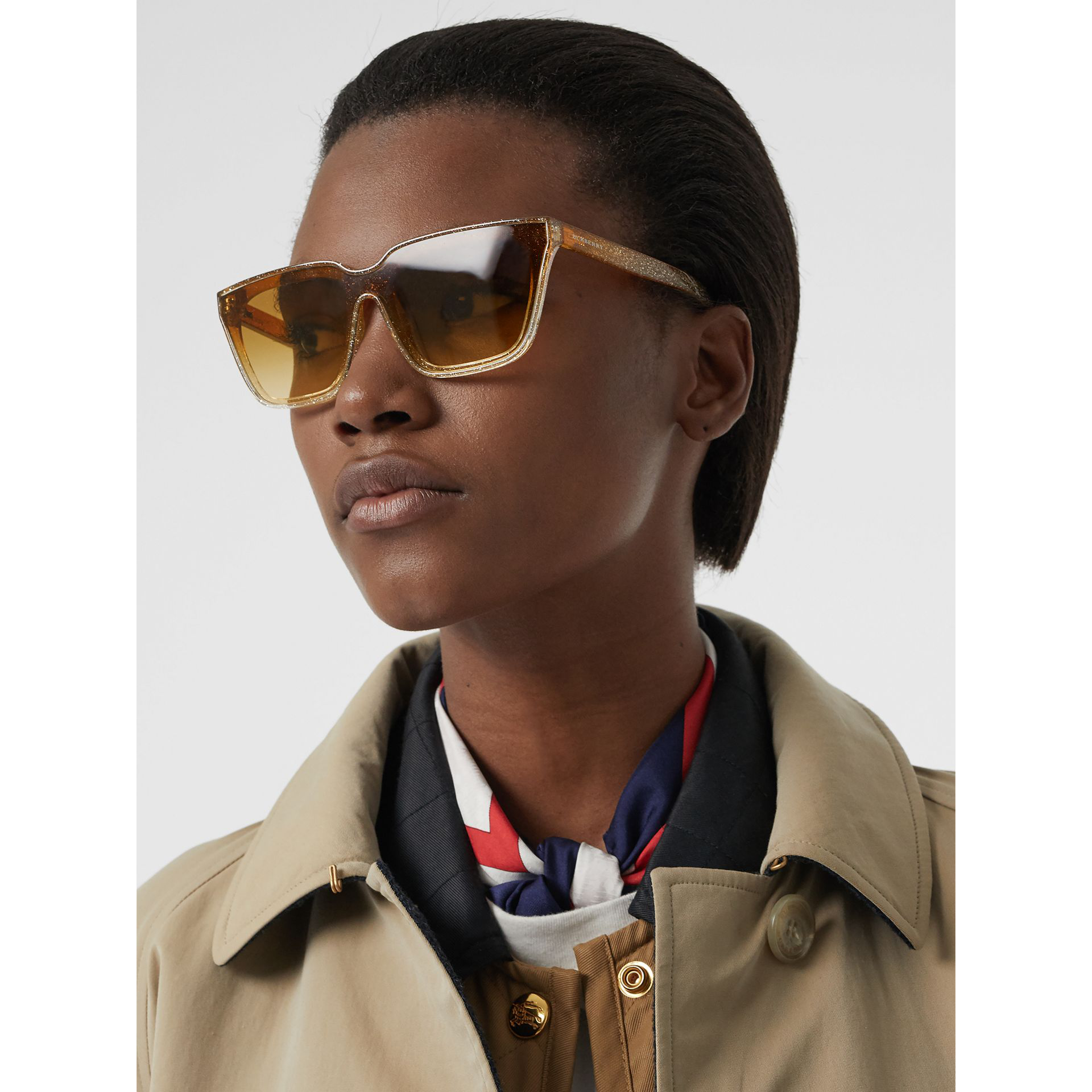 Shop Burberry Glitter Detail Pilot Sunglasses In Yellow from 400 stores starting at 250. Explore the trench coat clothing and accessories collections and shop the latest pieces designed by Riccardo Tisci.
